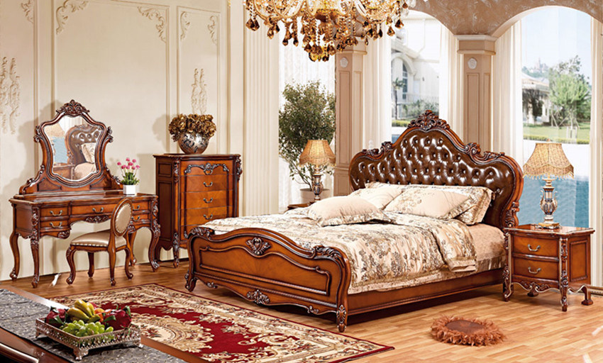 Newclassic الأوروبي حجم الملك سرير أثاث غرفة نوم مجموعات غرفة نوم من الخشب الصلب